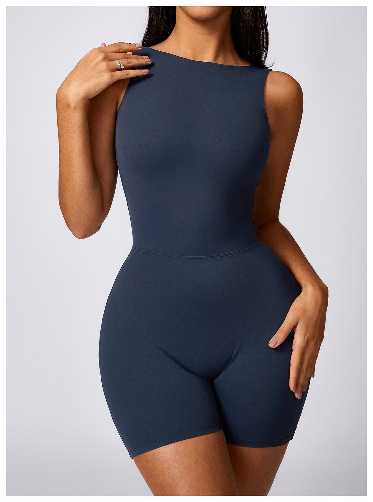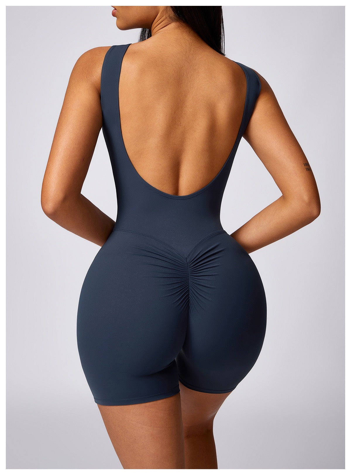 Open back shorts jumpsuit